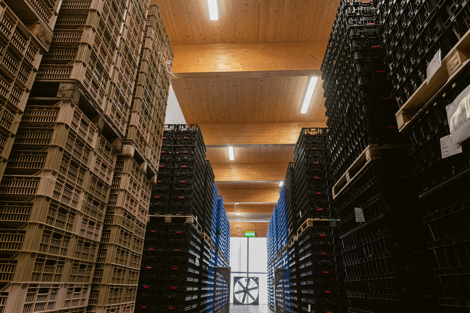 Drying: Valpolicella's unique method The drying of grapes is Valpolicella's unique and distinctive method. Over the centuries, this technique—performed before pressing—has been perfected and is now used to produce Valpolicella's finest wines. It is a very critical and delicate phase, also linked to the changing seasons. Perfectly ripe and healthy grapes are selected during manual harvesting and placed in the Fruttaio. The architecture of the Fruttaio is a sign of sensitivity and attention to the continuous search for balance between human nature and the environment in which we live. The Fruttaio is designed to ensure constant ventilation of the grapes, so as to avoid moisture stagnation and allow for gradual temperature changes. Massimago has chosen to adopt a new Japanese-inspired technique that uses natural winds instead of machines. The building envelope, characterized by a second layer of reclaimed wood cladding, makes the volume of the fruit cellar even more ethereal. The building is a combination of functionality, aesthetics, and dialogue with the surrounding environment.
