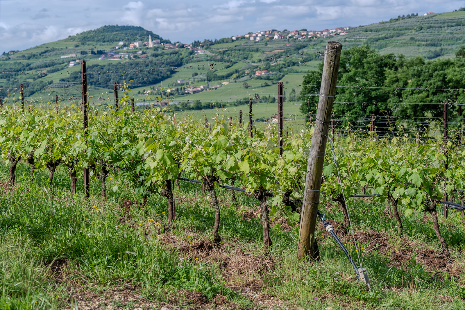 The espalier training system, also known as Guyot, is a modern technique that enhances quality and production control. The vines are arranged in vertical rows, facilitating pruning, canopy management, and harvesting. This structure ensures excellent sun exposure and good aeration of the bunches. Guyot promotes healthy, ripe grapes, ideal for wines of great finesse. It is now one of the most widely used systems due to its efficiency and agronomic precision.